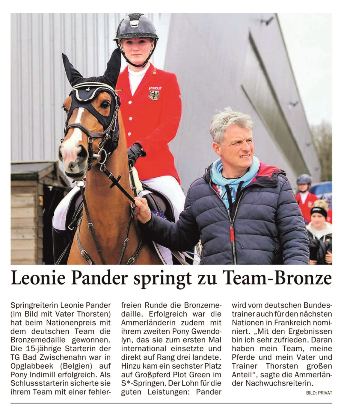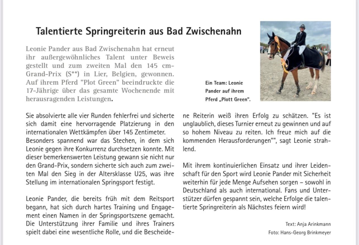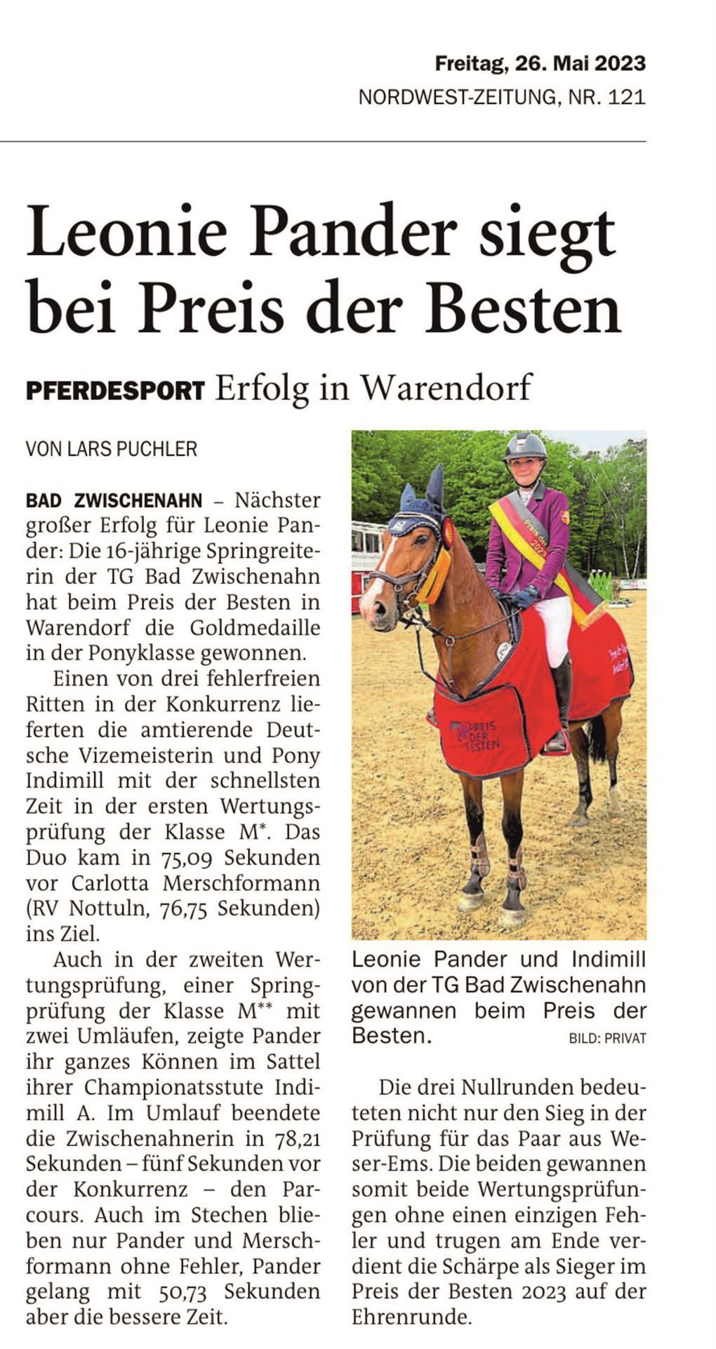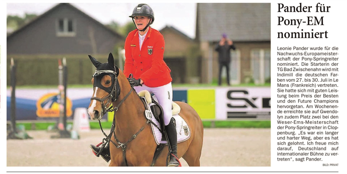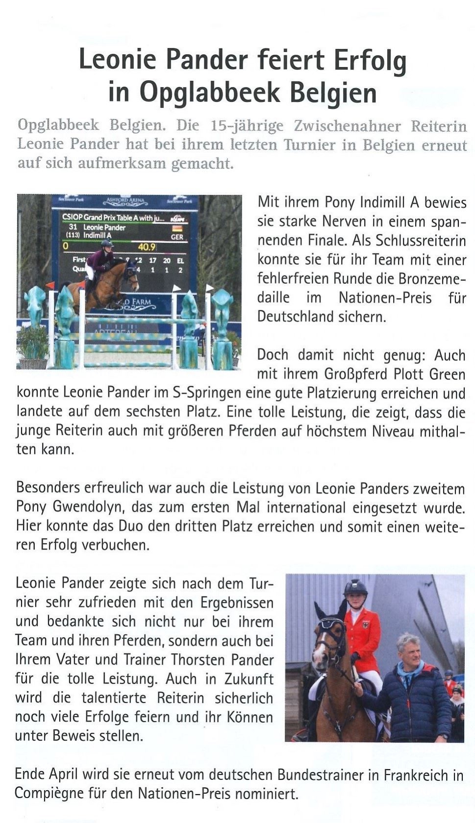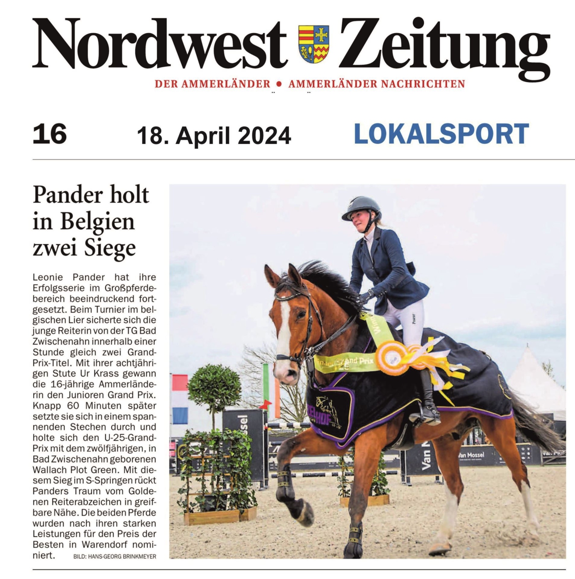 Leonie Pander erfolgreich in Belgien auf Indimill A, Artikel Nordwest-Zeitung