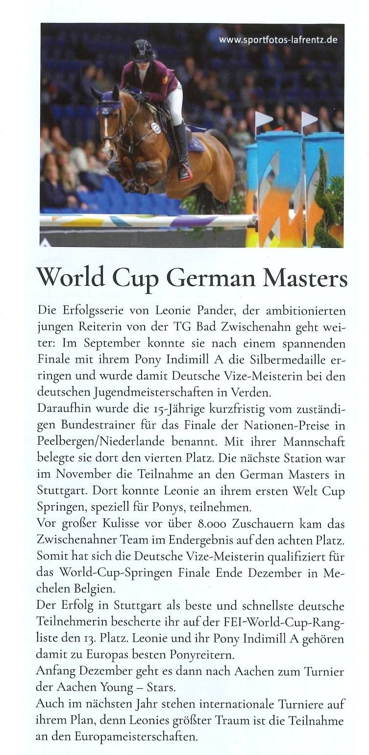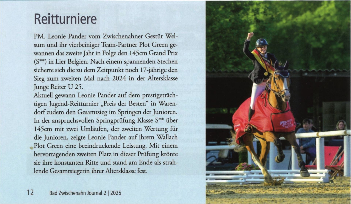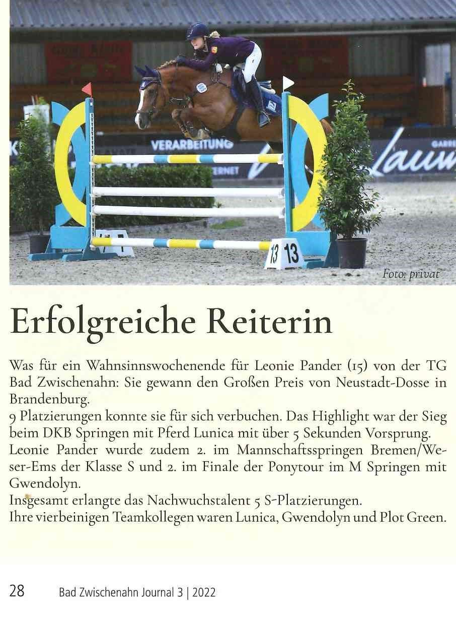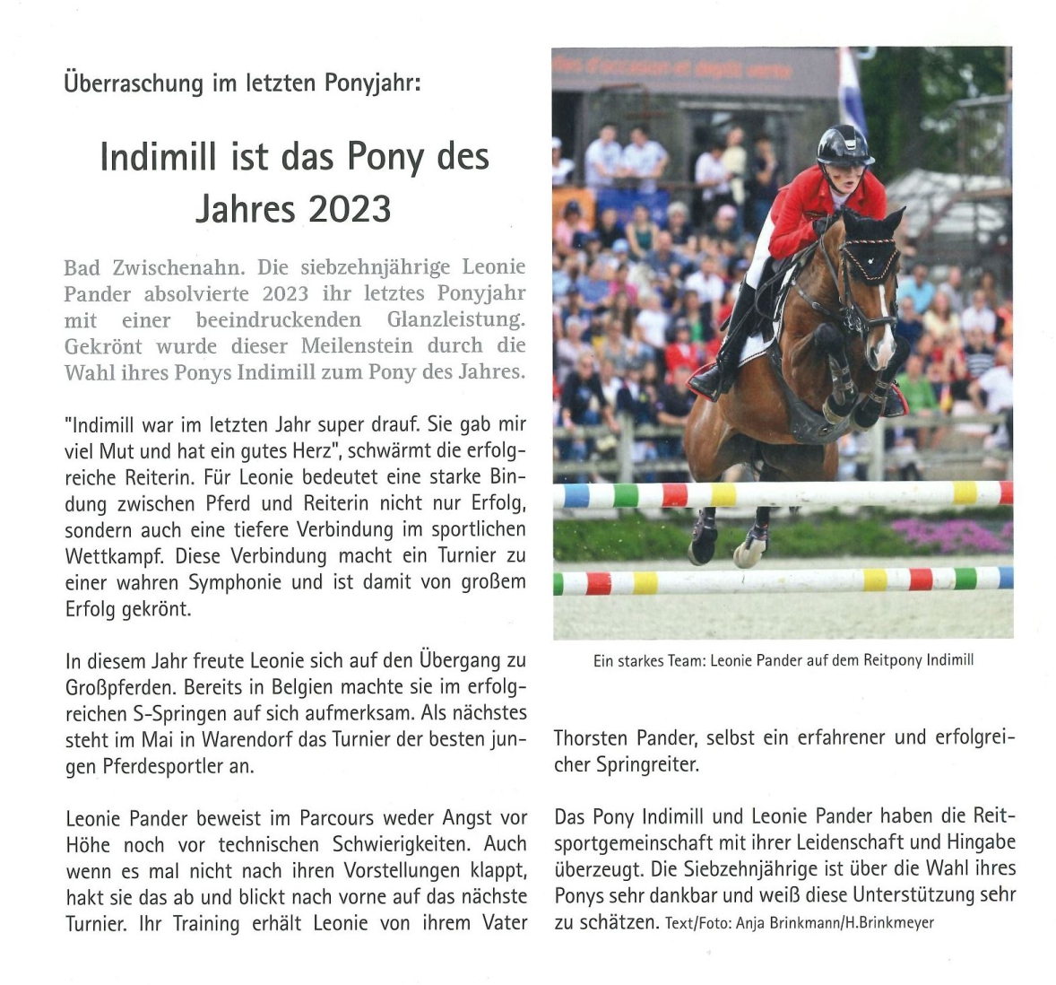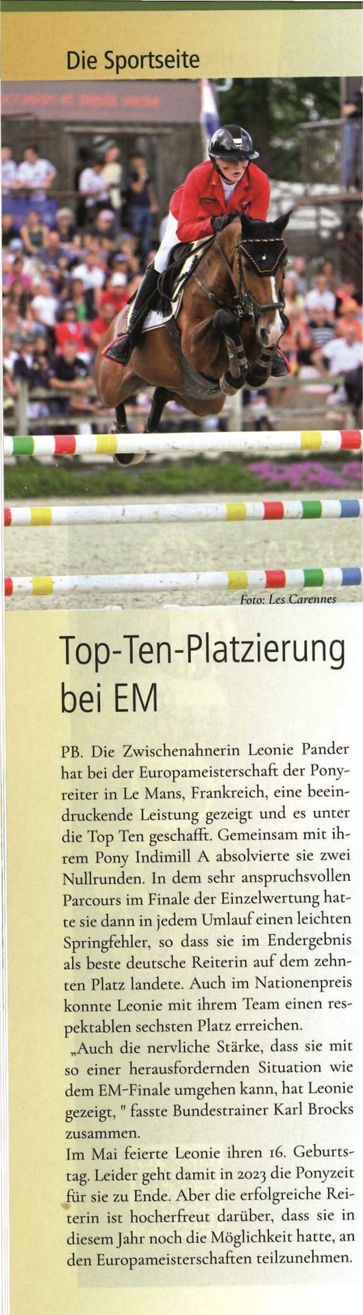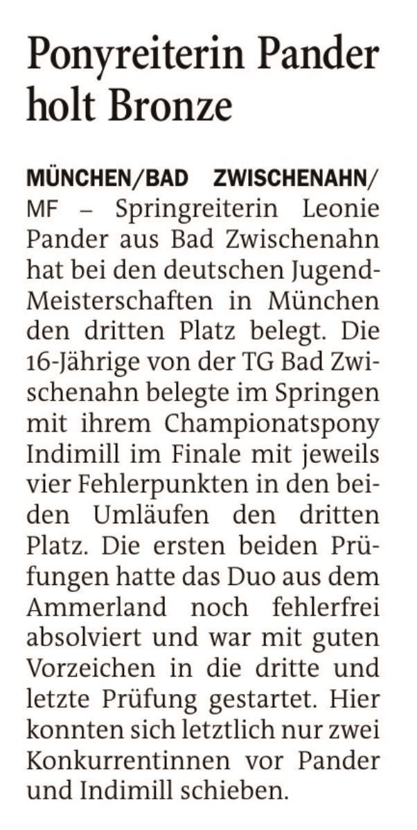 Leonie Pander erfolgreich in Belgien auf Indimill A, Artikel Nordwest-Zeitung