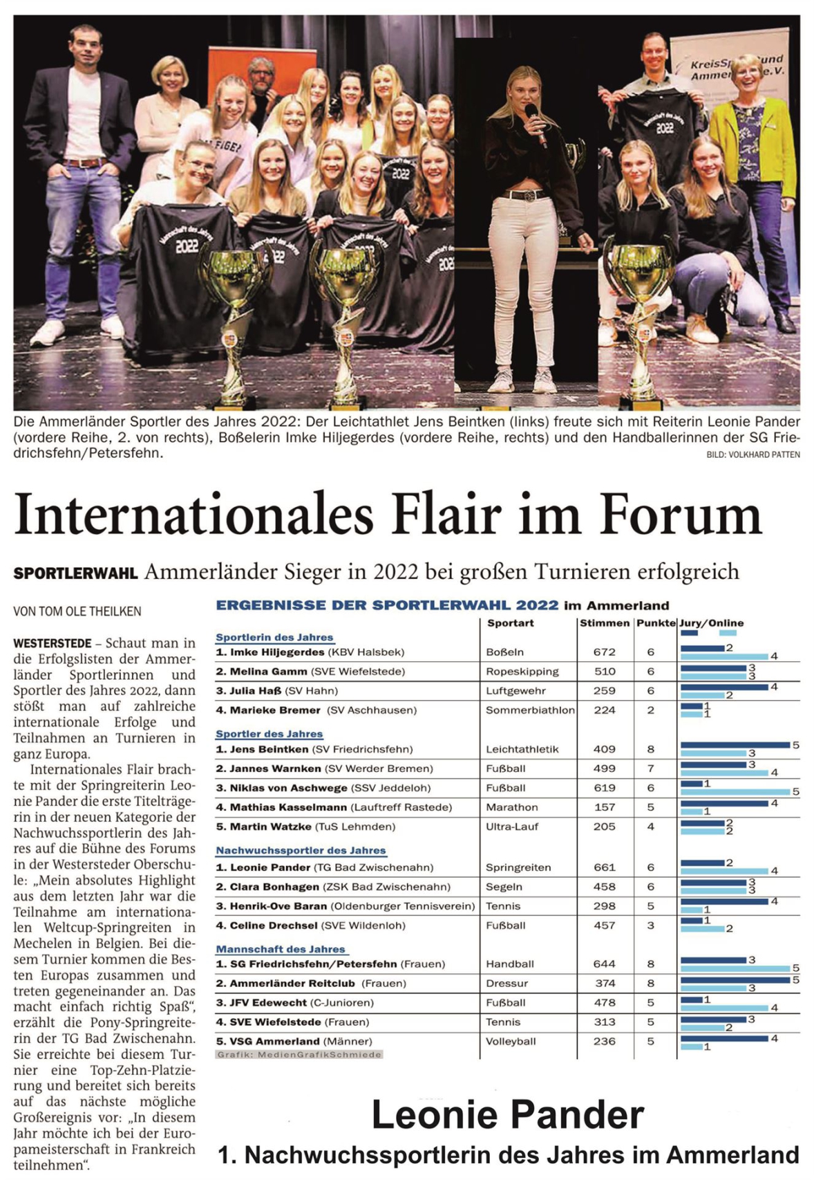 Leonie Pander 1. Nachwuchssportlerin des Jahres im Ammerland