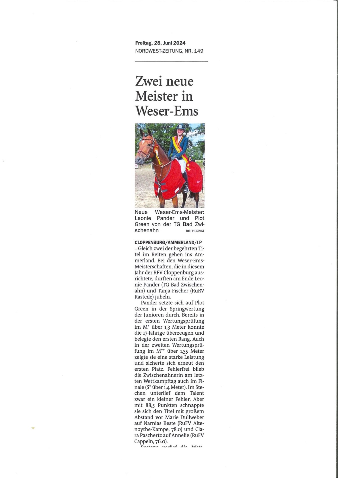 Leonie und Plott Green werden Weser-Ems-Meister Junioren 2024