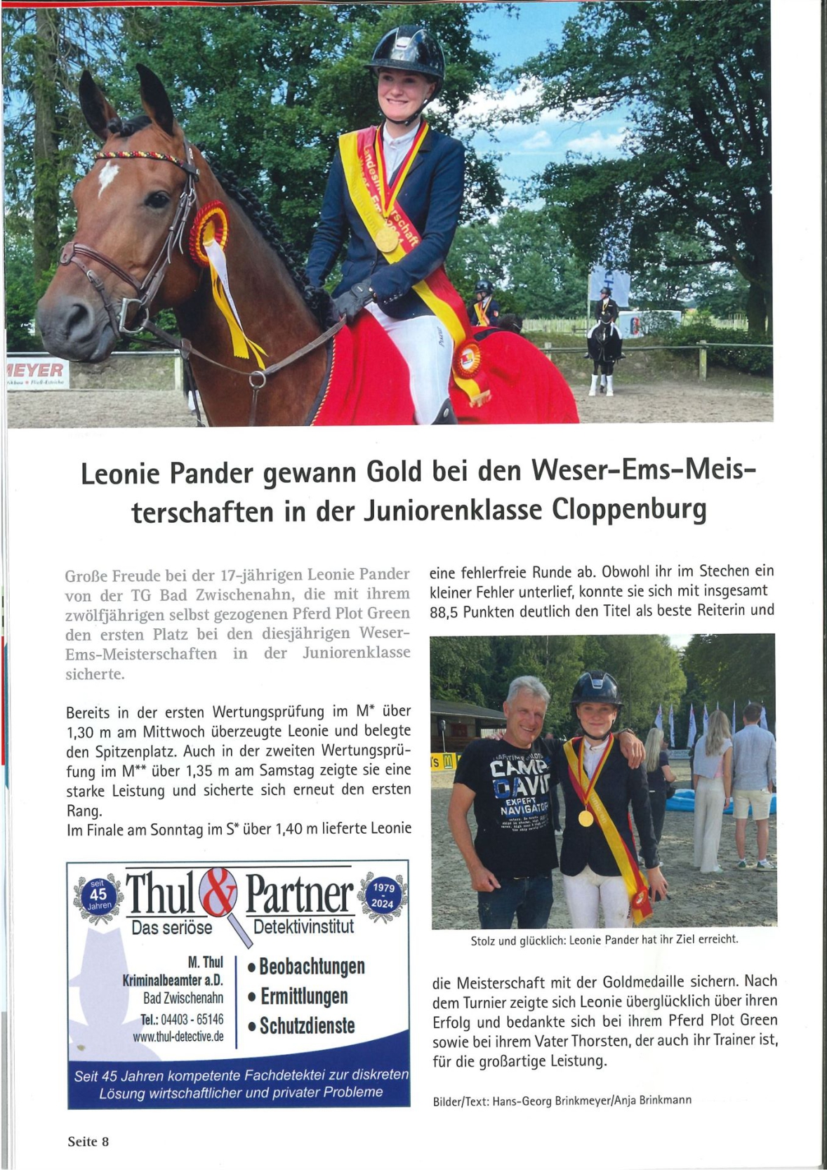 Leonie Pander Weser-Ems-Meisterin Junioren 2024 mit Plott Green Meilengänger
